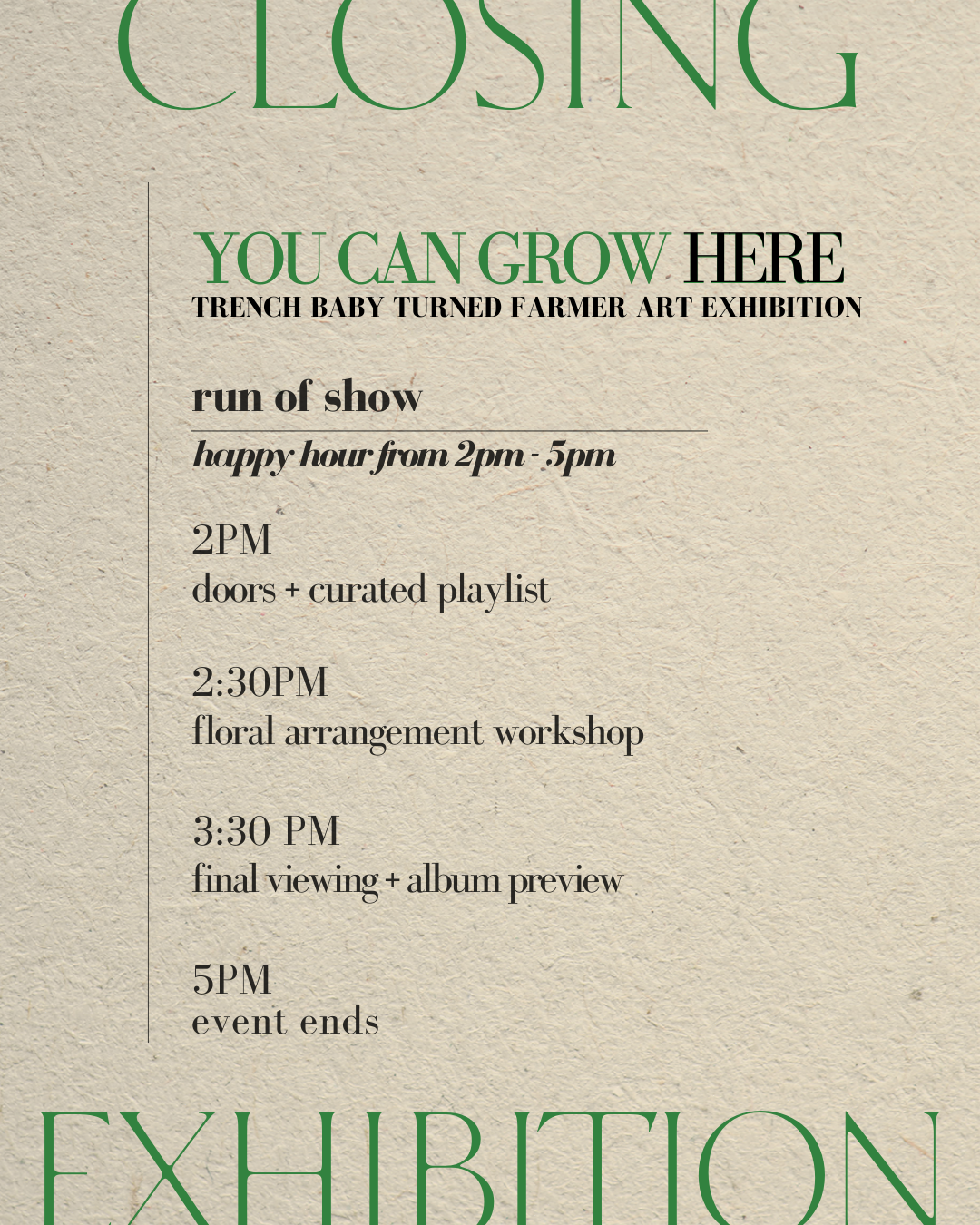 This event is the official closing of You Can Grow Here exhibition! The workshop will be followed by a final viewing and listening preview of the album.